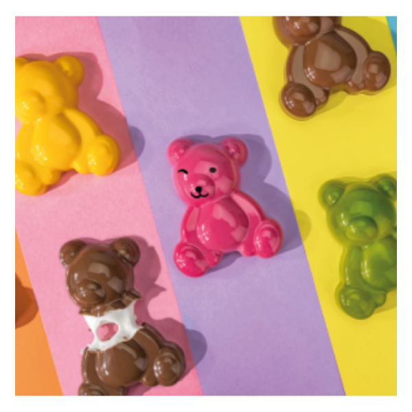 Mallow es el molde de chocolate para hacer bocaditos con forma de osito. Su diseño versátil y su punta redondeada le permitirán crear sujetos simpáticos y modernos. Cree un relleno de malvavisco para una experiencia aún más deliciosa y a la moda.